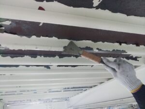 スクレーパーなどによってケレン作業です。