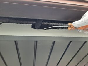 更には無機ハイブリッド塗料のハイパーリアクターコート無機にて破風から1回目の仕上げ塗装を施工し
