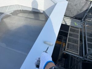 遮熱無機ハイブリッドの超耐候無機EXコートJY-IRにて2回目の仕上げ塗装でした。