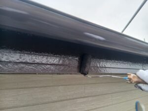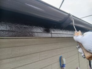 無機ハイブリッドのハイパーリアクターコート無機にて破風の2回目仕上げ塗装