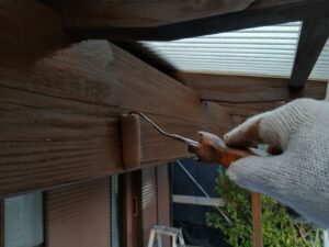 軒裏木部はキシラデコールフォレステージHSにて2回目の仕上げ塗装
