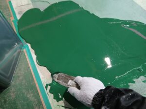 乾燥後、凸凹を平滑にさせるため、無溶剤の厚膜型エポキシ樹脂の流し込みまで施工しております。