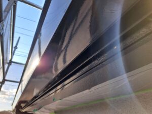 無機ハイブリッドのハイパーリアクターコート無機にて破風から2回目の仕上げ塗装を施工し
