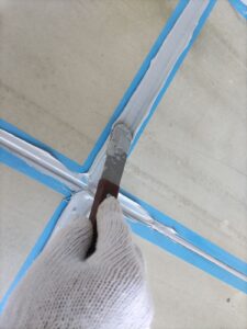 2階の土間に使用されているのはPC板ですが、継手がありますので、シーリングは打ち替えを行います。