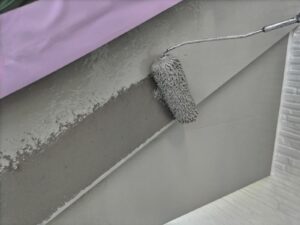 無機ハイブリッドのハイパーリアクターコート無機にて破風から1回目の塗装を施し