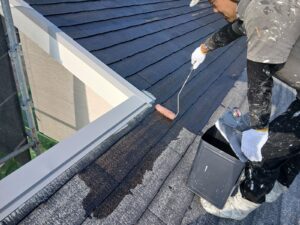 また、2階屋根の下地調整作業をスレート部の施工を行いました。