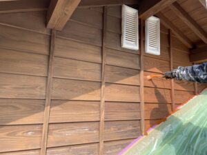 木部保護塗料の2回目仕上げ塗装です。