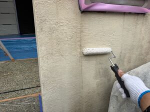 外壁は別途色の部分の2回目仕上げ塗装を無機フッ素樹脂の超低汚染プラチナリファイン2000MF-IRにて施工しております。