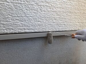 付帯部の土台水切りなどをハイパーリアクターコート無機にて2回目の仕上げ塗装を施工したり
