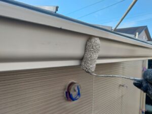 雨樋を元に戻してから雨樋の1回目仕上げ塗装でした。