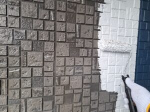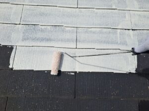 超低汚染プラチナリファイン2000MF-IRにて1回目の仕上げ塗装を施工し