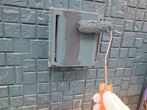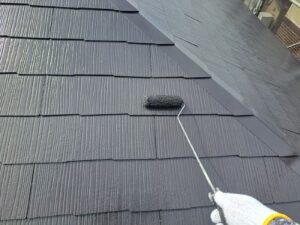 屋根の最終仕上げ工程として遮熱無機ハイブリッドの超耐候無機EXコートJY-IRにて2回目の仕上げ塗装です。